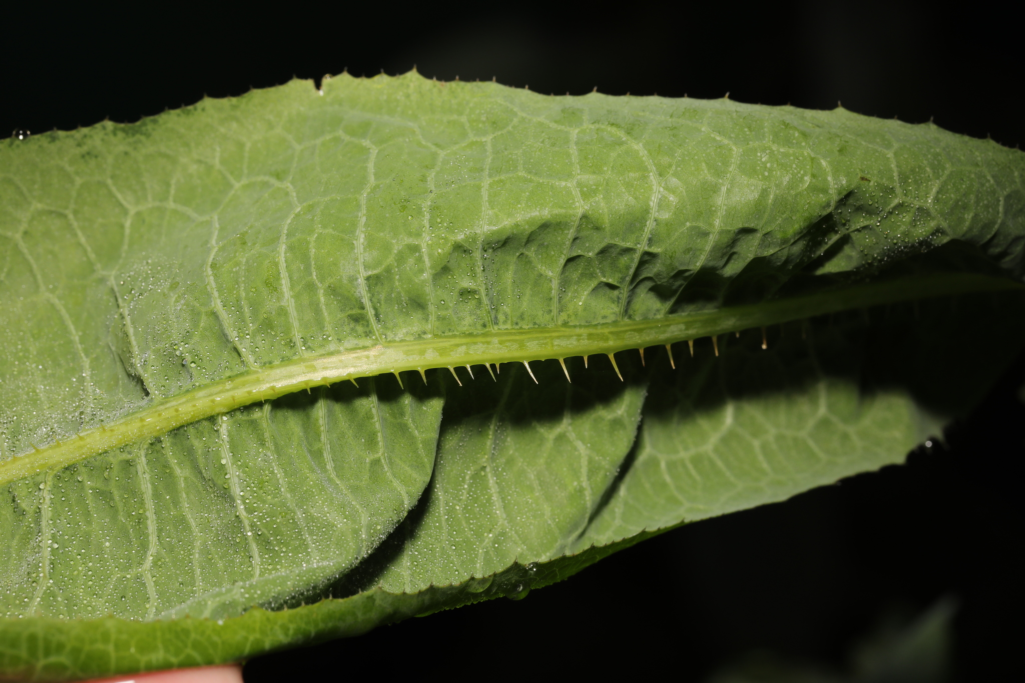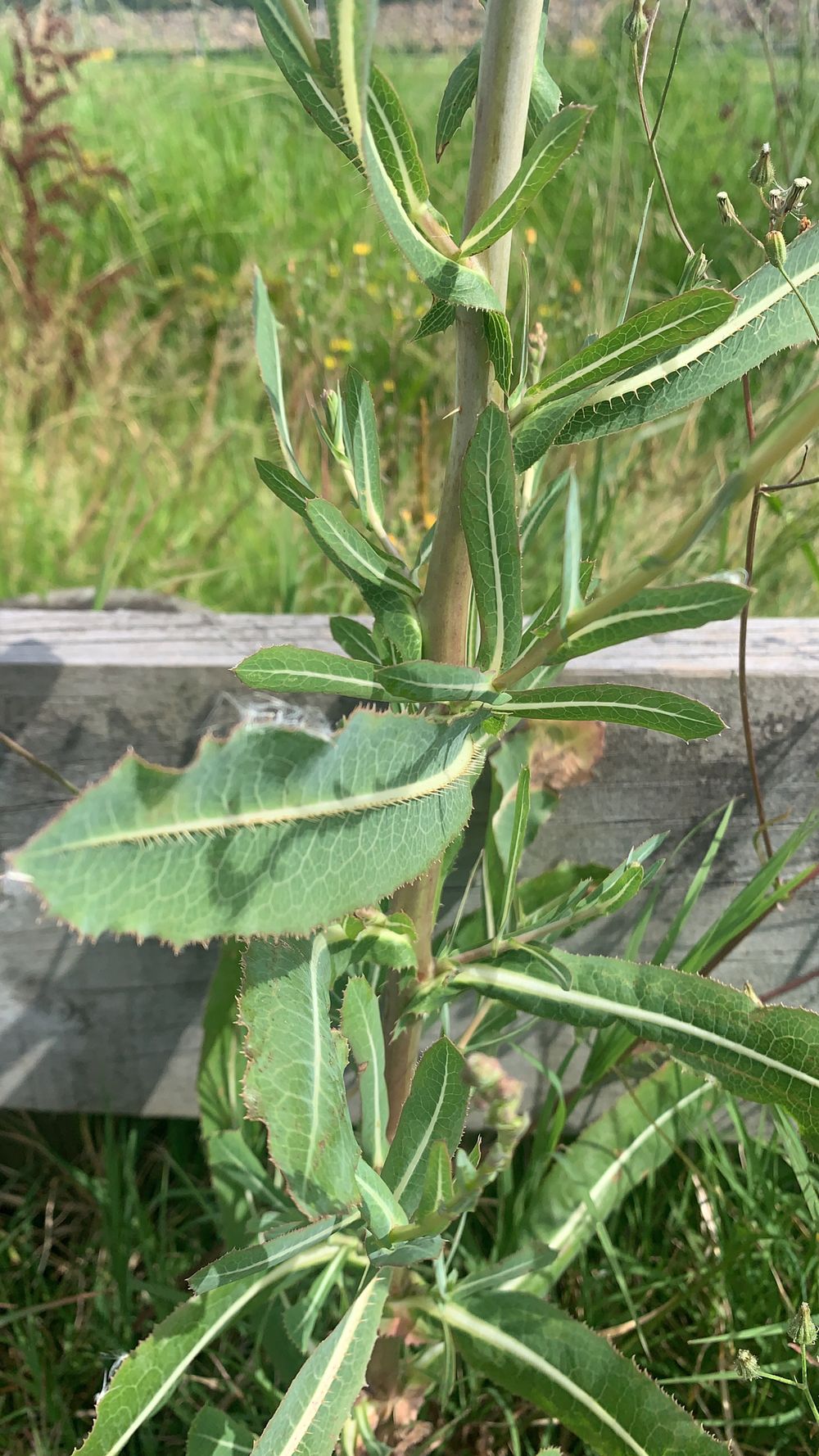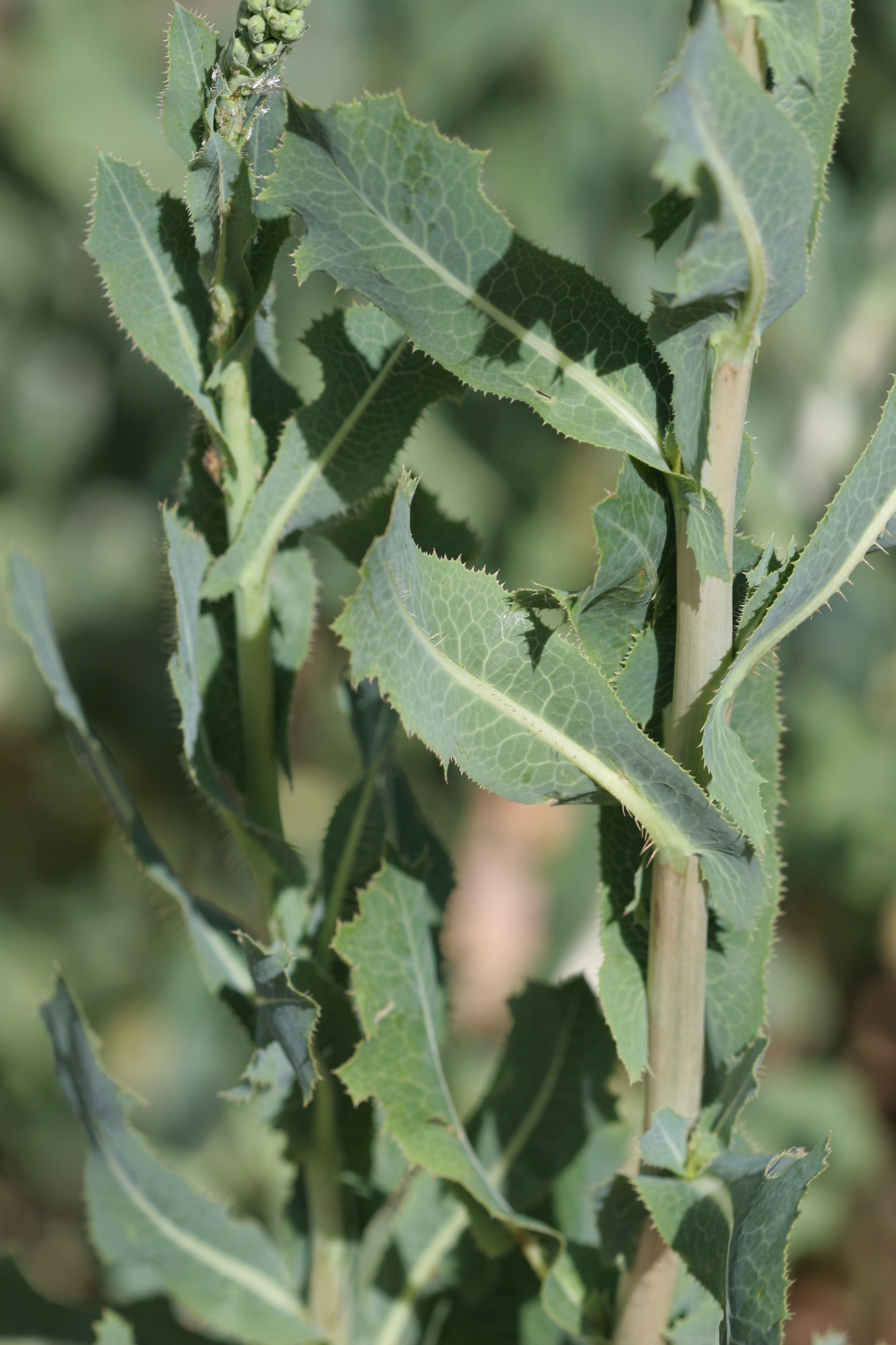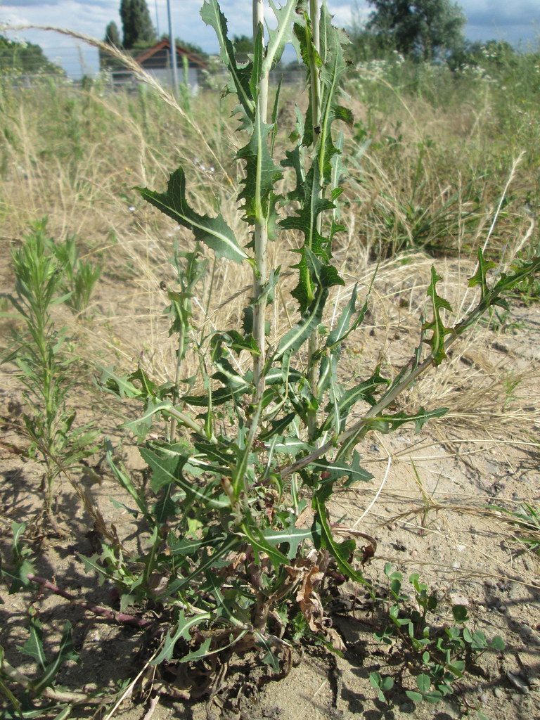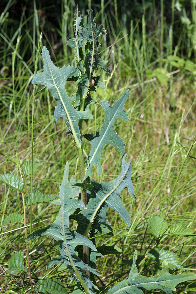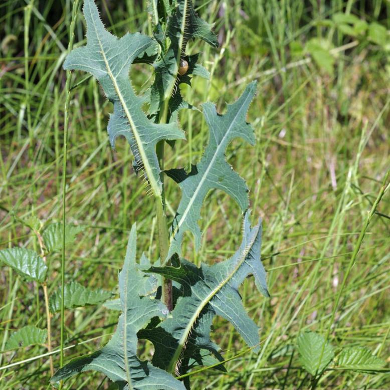 - Si les jeunes pousses sont comestibles, il n'en va pas de même pour la plante adulte, d'odeur fétide, à la tige raide et aux feuilles épineuses, renfermant un latex blanchâtre.